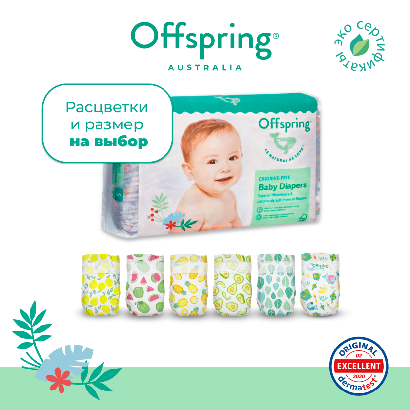 Одна упаковка подгузников Offspring, расцветка и размер на выбор.
